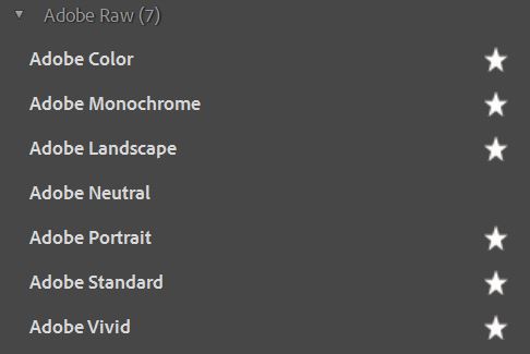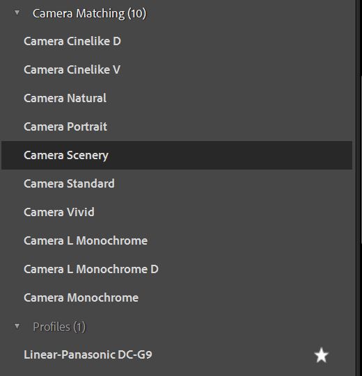 Under that are the Camera Matching Profiles which correspond to whatever camera you used for the shot. By having them here it means that you can change on the fly to another setting to begin your processing with.