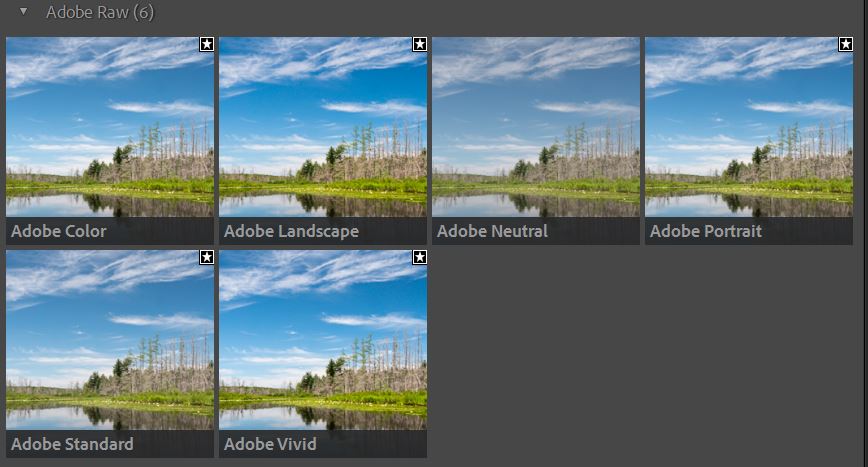 So back to the Profiles Browser. Underneath the Favorites are more – the basic RAW development profiles that underpin how an image looks to begin with. You’ll notice that Adobe has Neutral as well and hasn’t elevated it to a favorite. I think it’s because it’s a pretty flat image and we’re accustomed to high contrast and deep colors even when we haven’t done any editing.