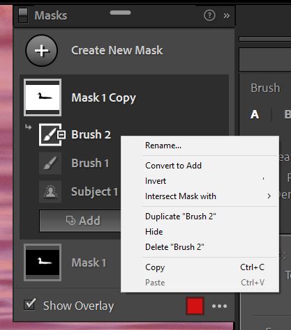 You can see that the menu defaults to the opposite of what the brush was used for originally and will save you having to do any complex, fiddly or time-consuming refinements all over again. The sub-masks work just as they should and you can keep refining the Mask as needed.