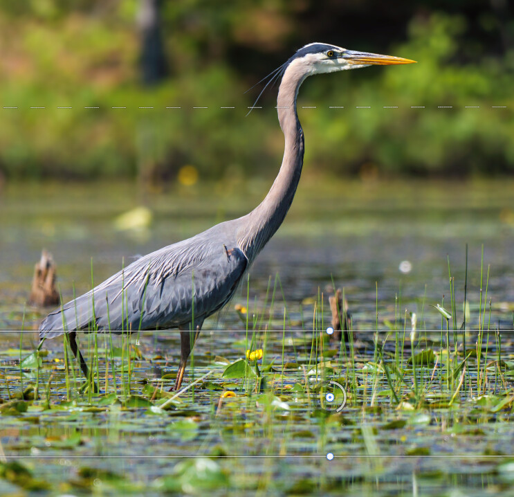 Here’s a look at what the Tilt-shift blur tool looks like – the center line to dotted lines and how I put that center where the bird is standing to keep that part of the background crisp –