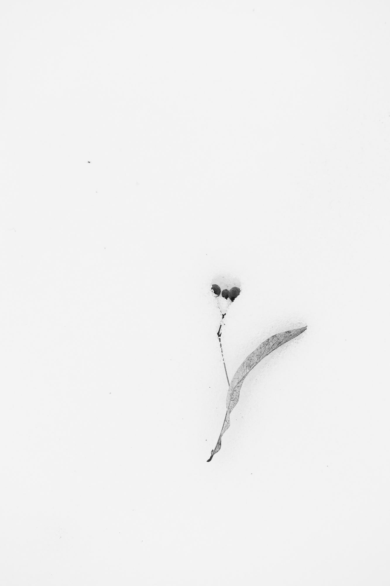 My catnip! A basswood samara in snow! Needs more exposure, but placement and focus is good.