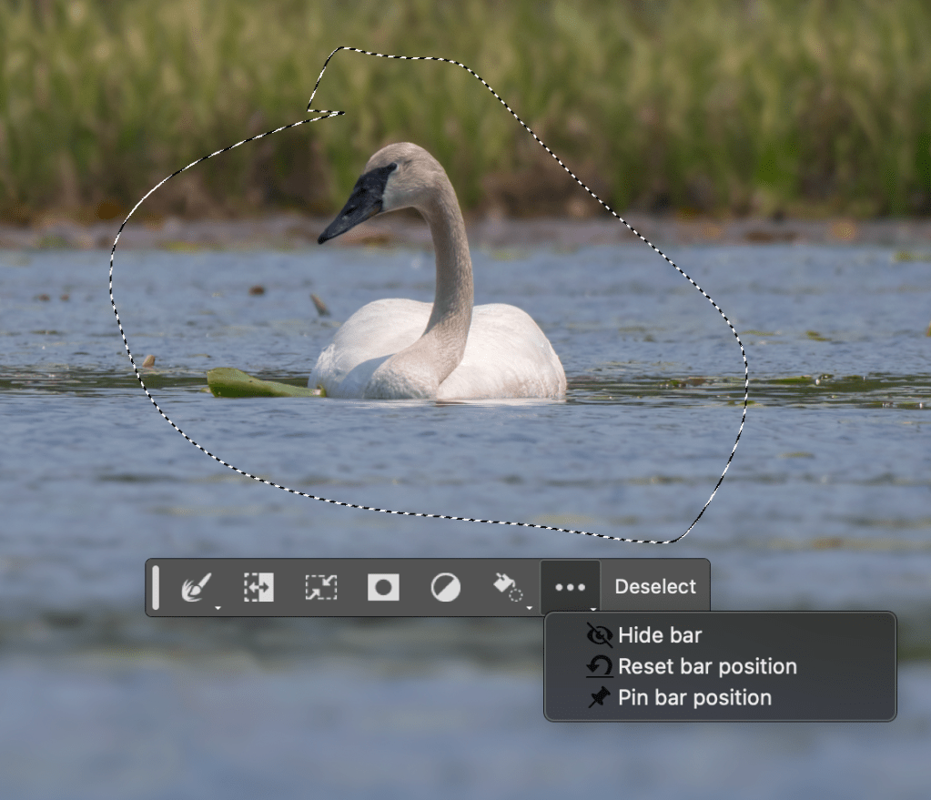 I’m still going to approach photo manipulation as if I was a painter. That is, if I were to paint from life or paint from a photo, would I leave in all those stumps and branches in those swan images? The answer is no. I wouldn’t. And I’d reverse him as well – for left-to-right readers it’s a more natural perspective and engages us more immediately. There is more ease with the flow if things point this way and so I’ll still do it where it makes sense. Ditto with the additional blur I created with the Neural Filter. My lens was as wide open as it could be, but the swan was closer to the background than to me so that part was more crisply focused than I wanted. To me it’s all just interpretation, like lifting my mid-tones or raising the blacks to make things softer. Plus the effect I achieved is what you’d get with an 800mm f/4 lens, and who wants to carry that around?!