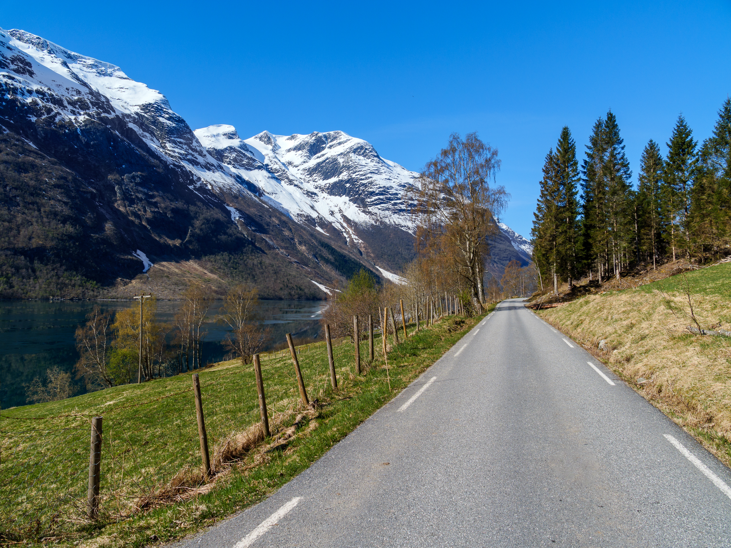 Back to Norway we go. Taking a day to drive from Oye to our second hotel near Skodje, we headed to the small town of Loen (pronounced Loo-In) to ride the skylift and enjoy the roads that hug the fjords and thread the mountains. We planned to go right to the skylift, but when we got there busses and busses of tourists from the cruise ship that just docked were in line, literally snaking down the enormous stairs to the parking lot. Uh. No.