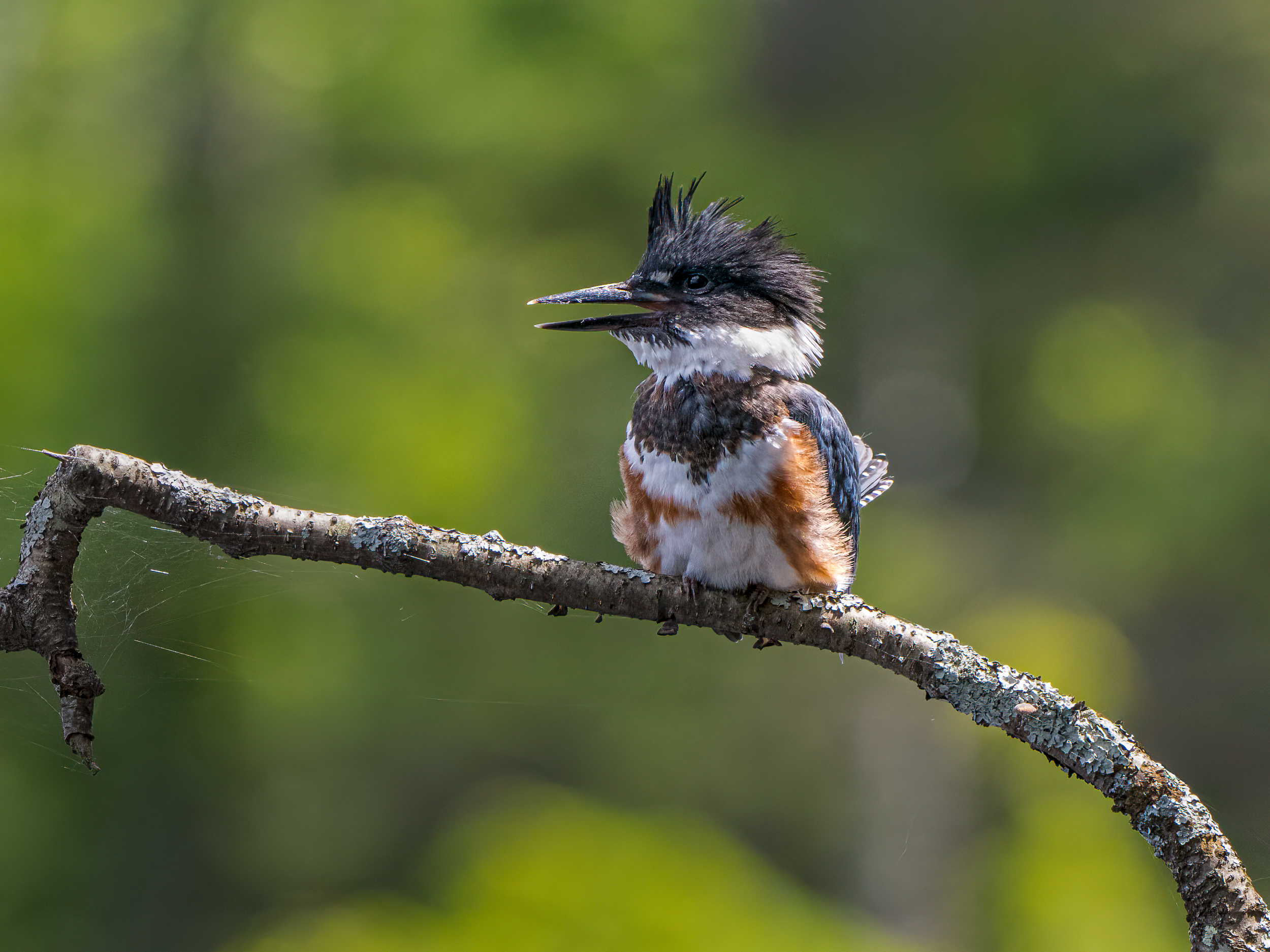 While kayaking I have encounters and moments I’d never have anywhere else. There are two main ways to have these. One is to be ever watchful and quiet as you paddle around, the other is to find a spot where you can just sit and watch. Keep your eyes peeled for any signs of movement, but also keep your ears open and listen to what is around you. While on Harrison Flowage in early July, I heard Belted Kingfishers as I crossed the lake in a stiff wind. Threading my way from island to island, I saw this bird dive and come up again as I was pushed directly at it. The dive didn’t result in a catch for this young female, but it did result in plenty of catches for me!