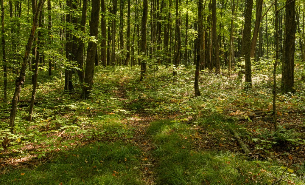 Come with me into the woods for a little saunter among the trees. You won’t even break a sweat unless is abominably hot. In northern Wisconsin, that’s pretty rare.